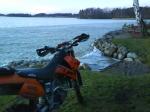 Ja mycket mer är det synd att kalla det ... Sikta in mej på Sndstugan för att kolla badtemperaturen. Var tvungen att gena genom lite skog för att komma förbi en bom, Givetvis åkte jag för sakta och välte :-S men ingen skada skedd... kände faktiskt inte på vattnet , men det såg kallt ut :(