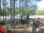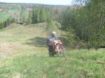 Alex hade en deadline så det var bara att börja ge sig hemåt efter lunchen. Några surhål, en liten sandgrop och en sväng på några stigar som vandrarna brukar använda så var vi i Ålberga igen. Alex drog direkt hem men vi andra tog oss genom skogen. Över berg med en helvets massa småpinnar som gjorde att det var lite spännande när framhjulet for undan hela tiden. Kom ner på gamla E4an och jag och Tommy försökte köra ikapp en TL 1000 mot Kila. Men att åka 150 km/h med crossdäck på asfalt gjorde att han kom undan......