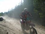 Körde fort som fan ner till mötesplaten. Vi blev inte så sena och sen fick Tommy ta täten och visa alla smultronställen i skog och mark. Det ända som var lite trist var att det var torrt som fasiken på gruset. Låg du sist såg du noll. Det dammade kan man säga! Men sen kom vi in i skogen. Tommy hade rekat några nya stigar och även en del traktorvägar. Kanon!