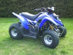 Pigg, stark, cool och riktigt snygg tystgående 2-t 50cc quad av mycket god kvalitét. El samt kickstart, ställbar tumgas, strypbleck för CDI-box, midjerem (typ dödmansgrepp), fjärrkontroll (on/off), separat oljesmörjning. Passar alla gasglada ungar mellan 5-10 år. MTD CubCadet -07. Gångtid c:a 30 tim.