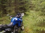Har nu ikväll måndag varit ute o testat gps o att den sitter kvar. Den sitter endast med sug kopp mot insidan av kåpglaset. Otroligt men den satt kvar hela resan genom asfalt grus skumpiga timmer vägar o genom skog:D Jag säkrade med snöre utifall att. Mycket nöjd med den. Har friluftskartan på stor display! Saknar inte min gamla hoj gps med liten skärm. Denna var ju till bilen först. Ej vatten tät men ska fixa ett skydd. Men den fick inge vatten av regnskuren på väg mot ökna. Sitter ganska skyddad under kåpan. Grym överblick får man! Körde in på en timmer väg som slutade i en stig till ren skog.. Såg på gps:en att vägen går till vänster. Och bökigt att vända så va fan tänkte jag får testa terräng körning fram till vägen. Bilderna visar där jag körde in i skogen:D Kom till en nästan torkad myr. Där jag fick gasa o nej jag fastnar tänkte jag men gick bra. Sen halkade framhjulet på en stubbe så jag tappar balansen o fick stötta med benet. Då känns det att den är tung:D